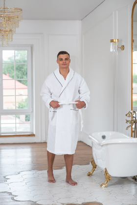 Вафельный халат отлично подойдет для дома в теплое время года, пропускает воздух и дает коже дышать, быстро впитывает влагу после сауны, ванной или душа.